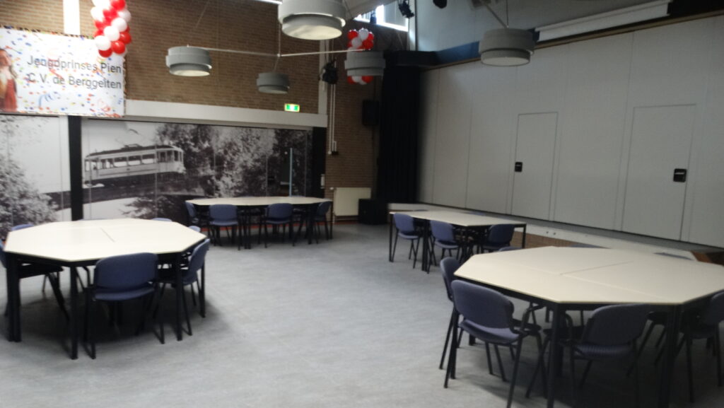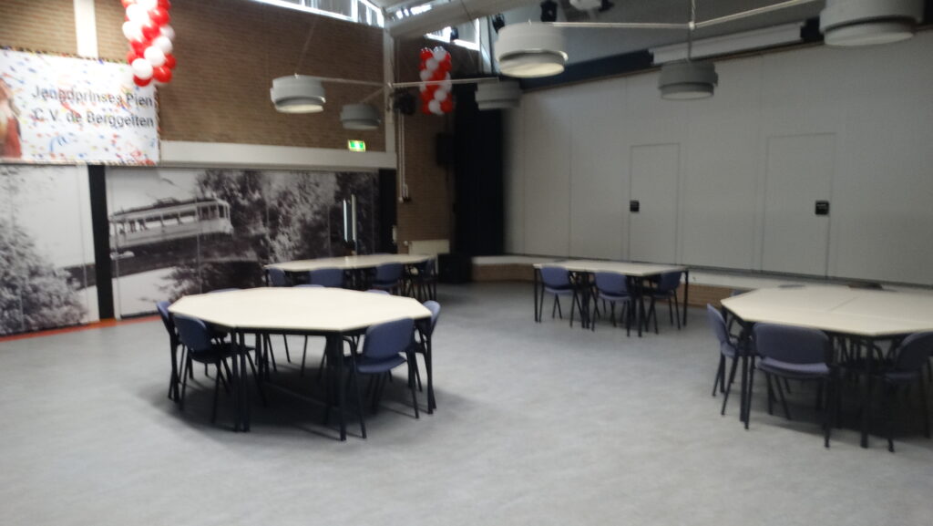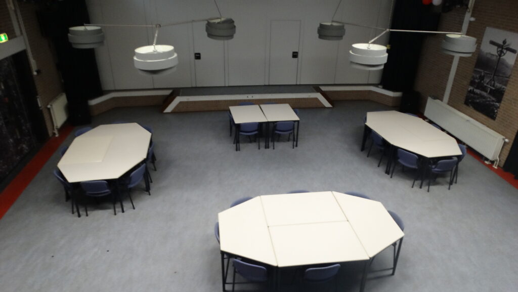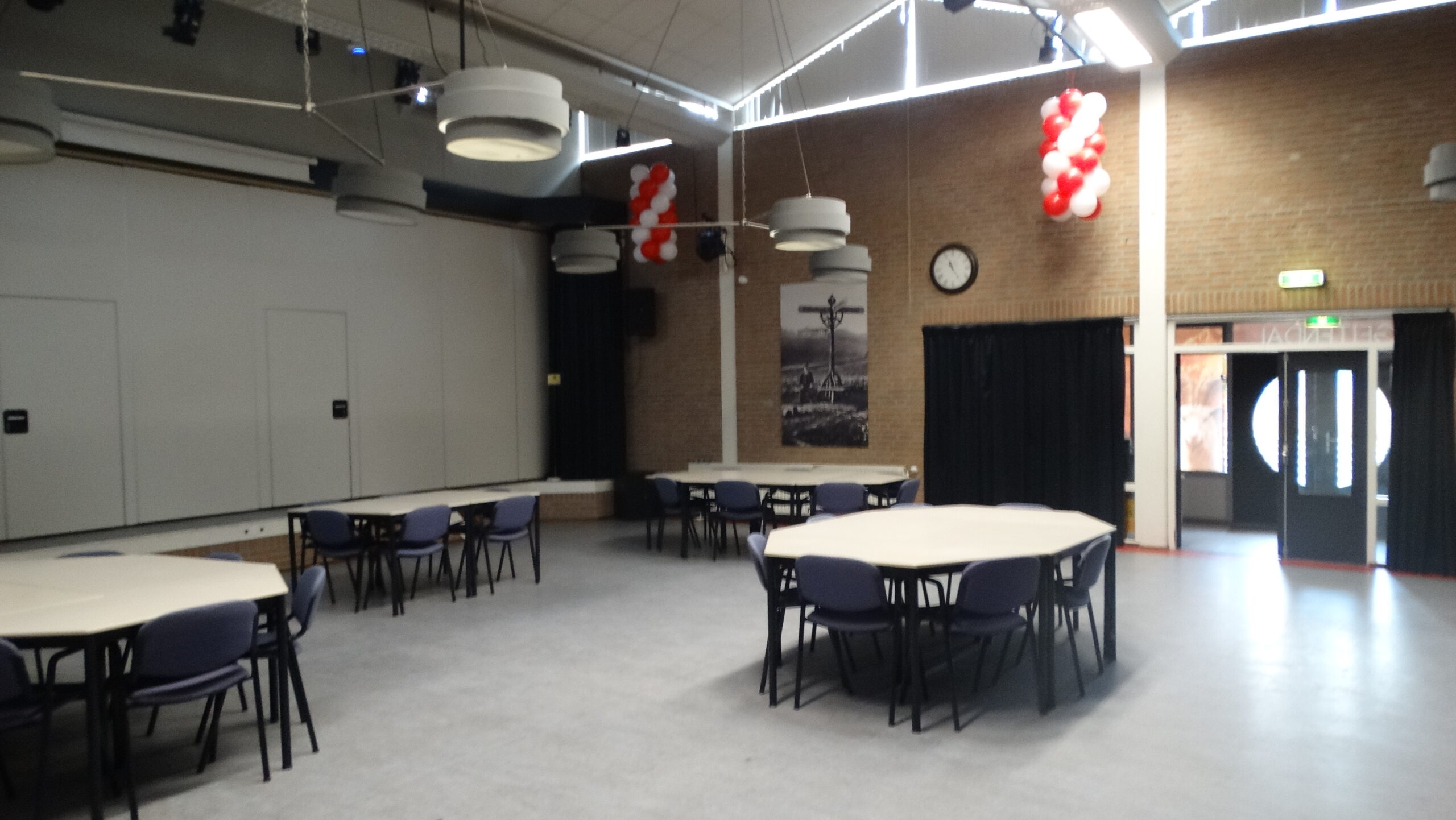 De Foyer is een multifunctionele ruimte van ca. 11 x 14 meter, geschikt voor allerlei bijeenkomsten en activiteiten. Door de flexibiliteit in indeling zijn verschillende tafelopstellingen mogelijk, of je kiest juist voor helemaal geen tafels en gebruikt de ruimte open. Wil je extra mogelijkheden voor bijvoorbeeld een voorstelling? Dan kun je aangrenzend het podium bijhuren. Ook is het mogelijk om de bar als faciliteit toe te voegen voor pauzes of een borrelmoment.